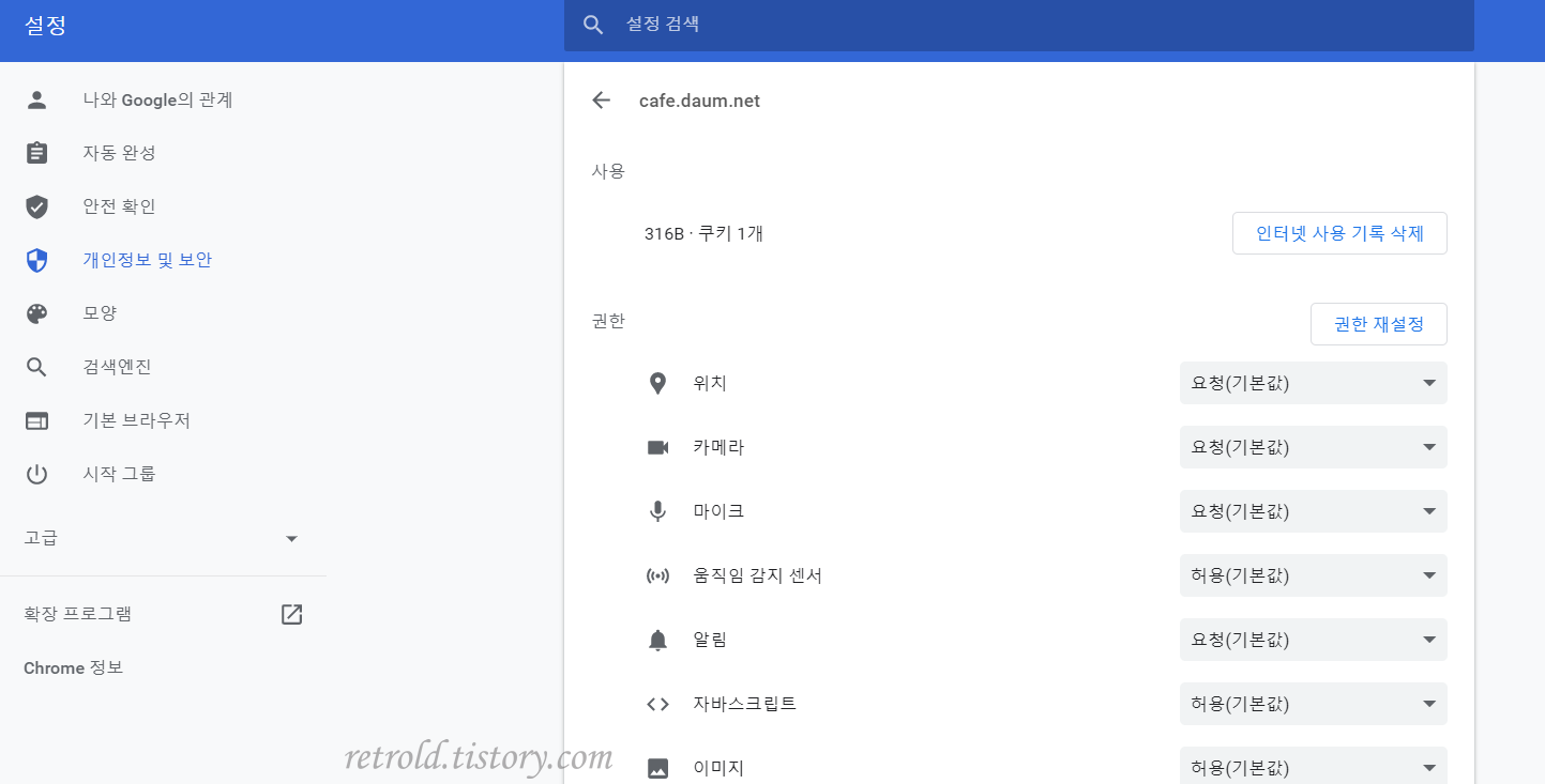 신뢰가 가지 않거나 자주 사용하지 않는 사이트는 아래처럼 해보세요.